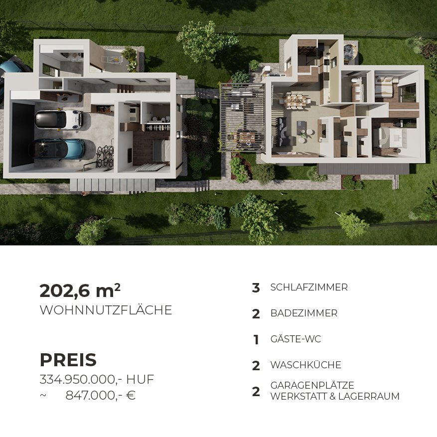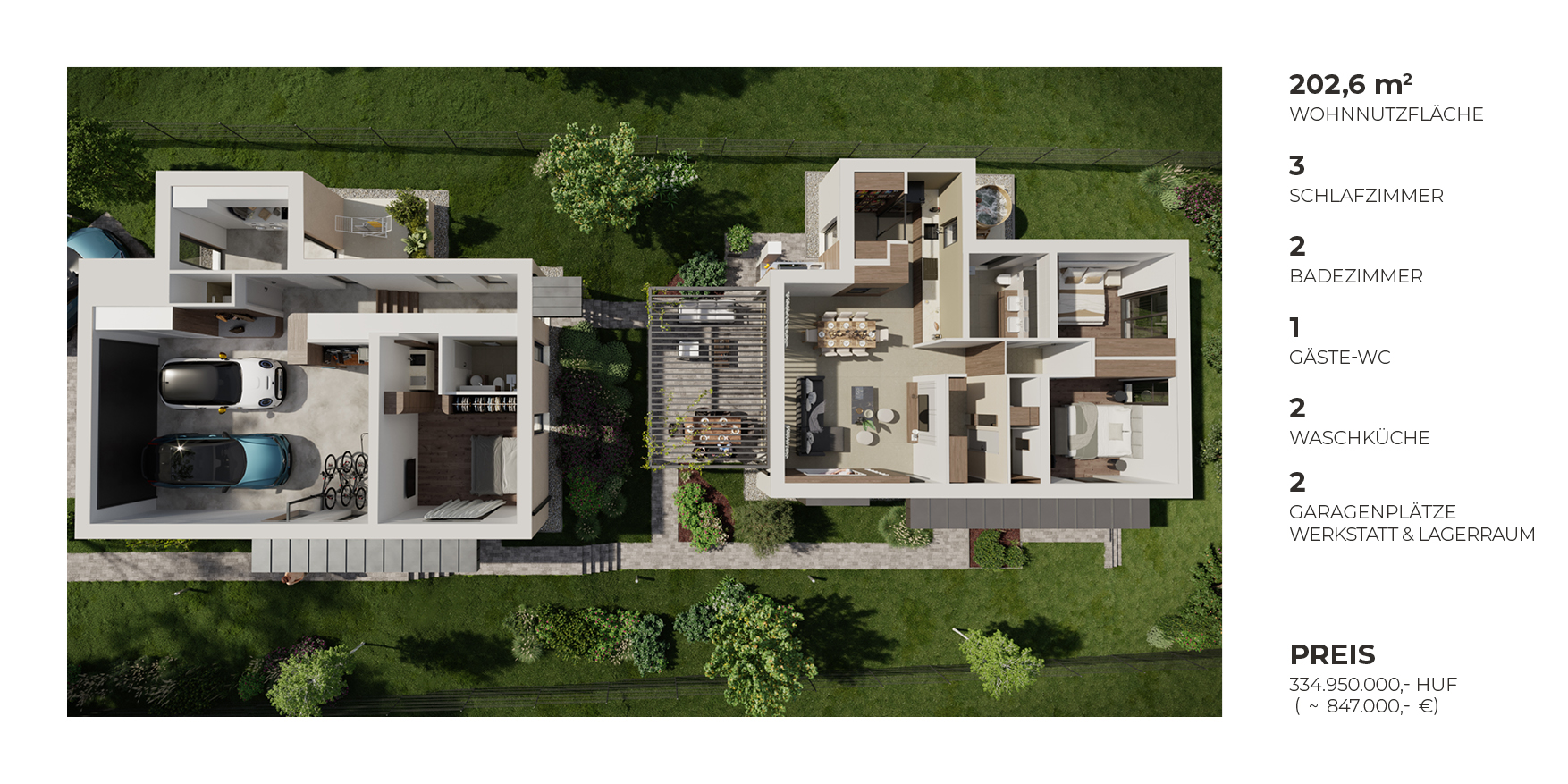 Der männliche Familienmitglied wird durch die Größe der Garage und die damit verbundenen Staumöglichkeiten begeistert sein, während die Dame des Hauses besonders von der separaten Waschküche, dem geräumigen Vorratsraum und nicht zuletzt von der direkt angeschlossenen, überdachten Sommerküche begeistert sein wird – ergänzt durch eine voll ausgestattete Innenküche, die keine Wünsche offenlässt.