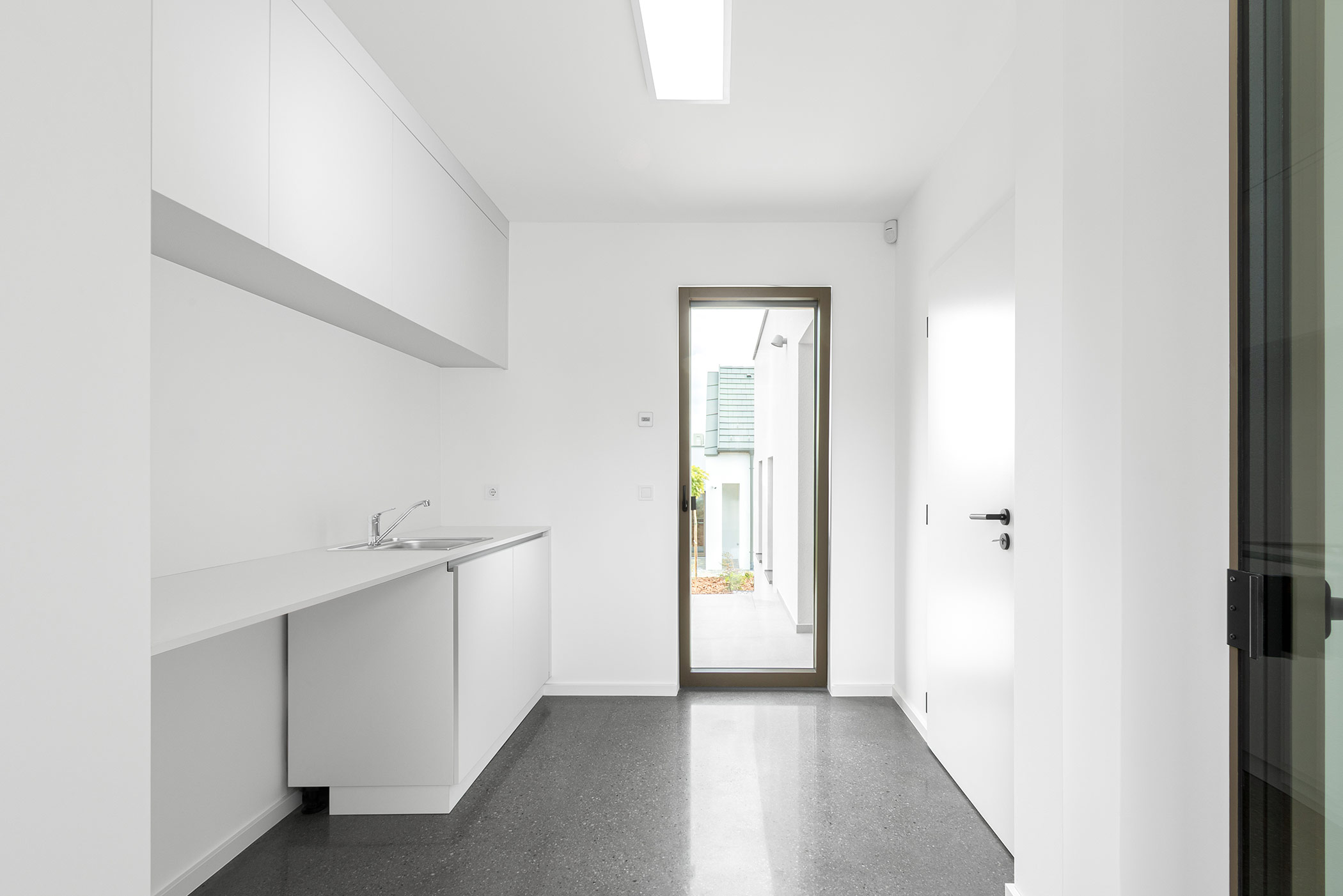 Großzügige Waschküche mit Terrasse. Heller Flur mit integrierten Schränken. Alles bis ins kleinste Detail durchdacht – denn wahrer Luxus ist nicht Show, sondern Konsequenz.