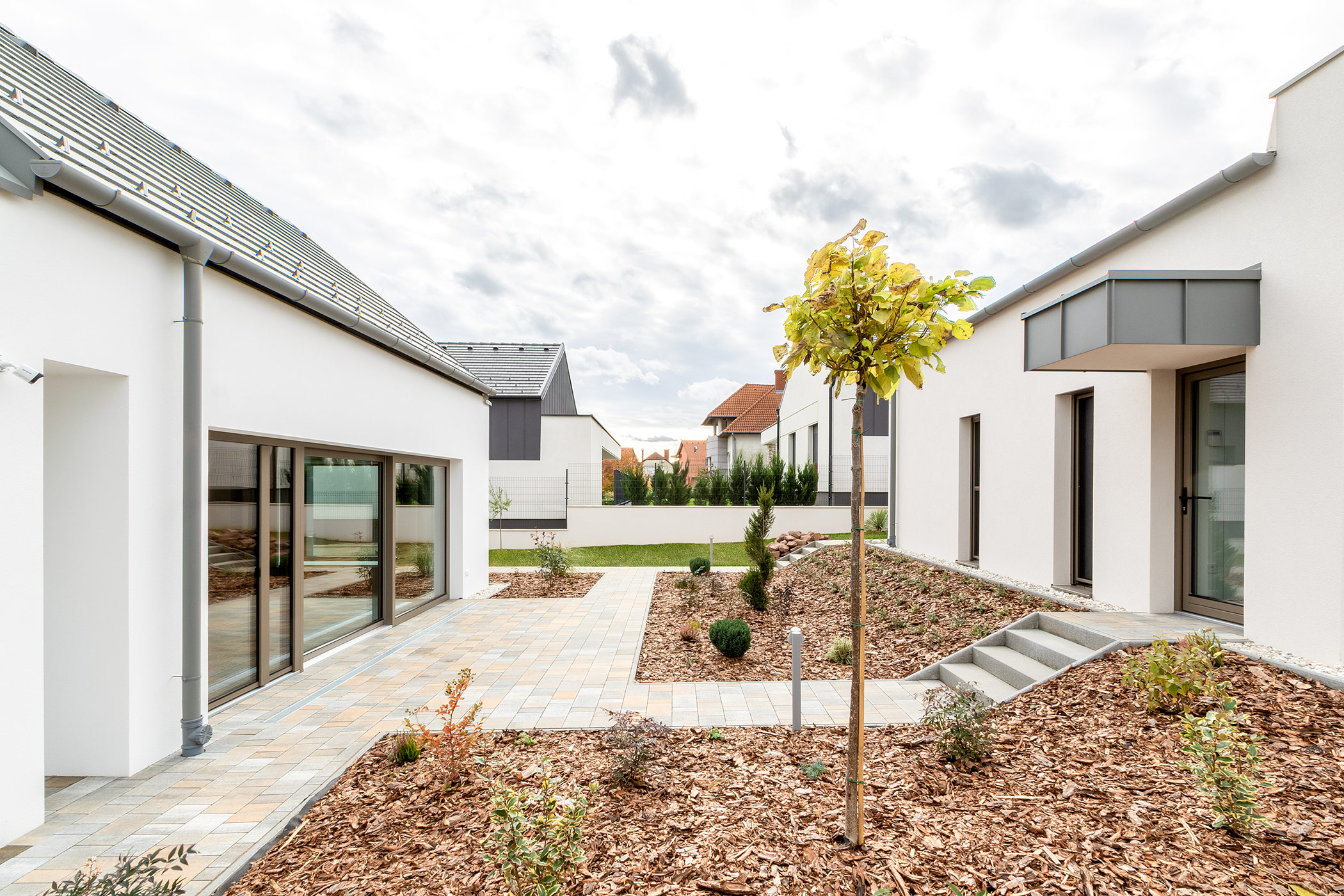 Large glass surfaces, sliding doors, an open flow to the inner courtyard. Airy proportions, subtle rhythms. Perfectly placed lighting — exactly where life will happen.