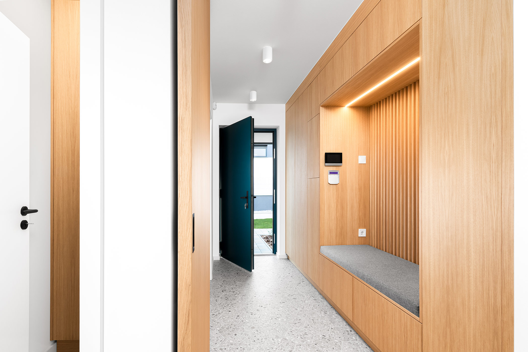 A spacious laundry room with terrace access. A bright corridor lined with built-in cabinets. Every detail carefully considered — because true luxury is not spectacle, but consistency.